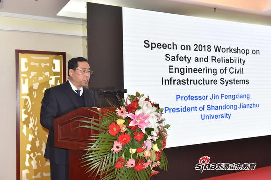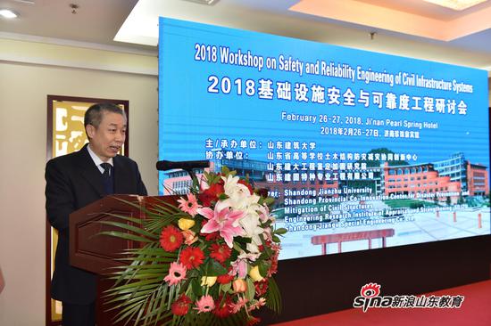 靳奉祥首先致辭,對(duì)參會(huì)的領(lǐng)導(dǎo)和專家學(xué)者表示誠(chéng)摯的歡迎,并介紹了山東建筑大學(xué)建設(shè)發(fā)展的基本情況。靳奉祥表示,此次研討會(huì)的召開,將推動(dòng)我國(guó)基礎(chǔ)設(shè)施的安全與可靠度領(lǐng)域研究,對(duì)山東基礎(chǔ)設(shè)施建設(shè)發(fā)展及新舊動(dòng)能轉(zhuǎn)換的實(shí)施將帶來積極影響。