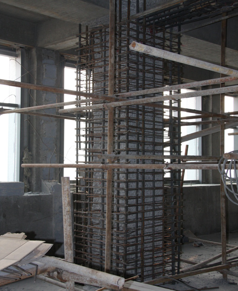 依據(jù)加固設(shè)計(jì)施工圖紙,本工程采用的主要加固施工方法:腳手架支撐卸荷、梁加大截面、柱加大截面、新加框架梁等。主要施工工藝:混凝土界面剔鑿、化學(xué)植筋、特種混凝土澆灌等。特種專業(yè)施工材料:喜利得HILTI HIT-RE 500錨固劑、北京聯(lián)合榮達(dá)RG灌漿料。