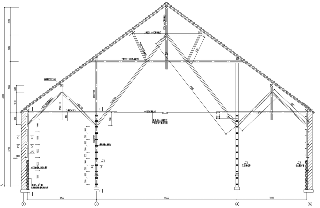 濟南成豐面粉廠位于濟南市天橋區成豐街北側,由苗氏實業家于1921年創辦,至今已有90余年歷史。成豐面粉廠建成以后,由苗家出資鋪設了一條東西走向的街道,命名為“成豐街”,沿用至今。保留需加固的廠房亦建于1921年,系濟南市近代中西合璧的歷史優秀建筑之一,建筑物南北山墻曲線形的山尖和墻飾線腳反映出巴洛克風格。主體結構為單層磚(石)結構,除北側山墻全部為清水磚墻外,其余三面維護墻1.67m標高以下為毛石墻體,1.67m標高以上為清水紅磚墻,即“以石墻為基,以磚墻為體”。毛石條形基礎,木結構屋蓋,屋頂掛粘土紅瓦(圖1),內部承重結構為9榀木架(圖2)。