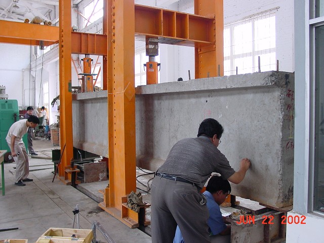 聊城某廠房預制吊車梁,在施工階段發現梁表面出現裂縫,運抵我所結構實驗室對其進行加載試驗。