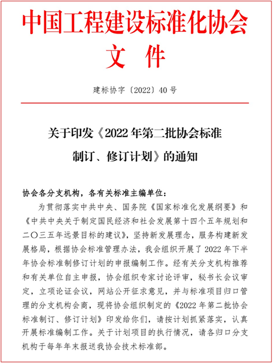 根據中國工程建設標準化協會(建標協字〔2022〕40號)關于印發《2022年第二批協會標準制定、修訂計劃》的通知,協會標準《城市綜合管廊基坑支護技術規程》、《機械頂管穿越工程風險評價標準》、《基坑工程三維激光掃描應用技術規程》、《既有建筑抗浮治理技術規程》已通過中國工程建設標準化協會審核并正式批準立項。由山東建筑大學工程鑒定加固研究院有限公司啟動四項標準的編制工作。